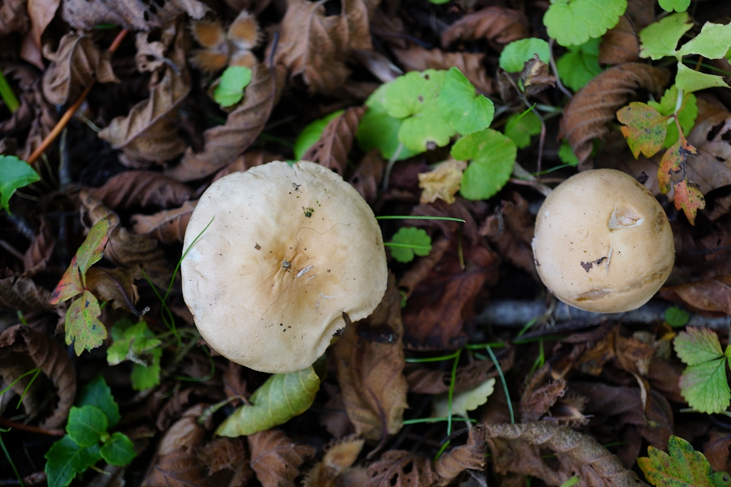 夏〜秋、動物の排尿跡や死体の分解跡などに発生する。カサ径4〜6cm、表面は灰茶褐色で縁部は淡い。湿時粘性がある。ヒダは密で白色から汚褐色、柄は下方やや太く、白色で全面に細鱗片におおわれる。