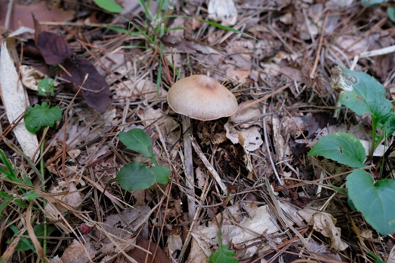 秋、アカマツ・コナラ林の地上に発生する。カサの径は3〜5cm、表面は茶褐色で吸水性があり、湿時周辺に条線が見られる。ヒダは直生で黄土色〜茶褐色になる。柄は白〜淡黄褐色で絹状の光沢があり、中空。