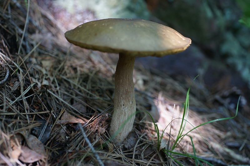 夏〜初秋、ブナ林やアカマツ、ミズナラ林の地面に発生する。傘は淡黄緑色〜ウグイス色で中央部は暗色。縁部にフェルト状の微毛がある。ひだは白色〜淡紅色、柄は淡黄色で淡紅色の条紋がある。