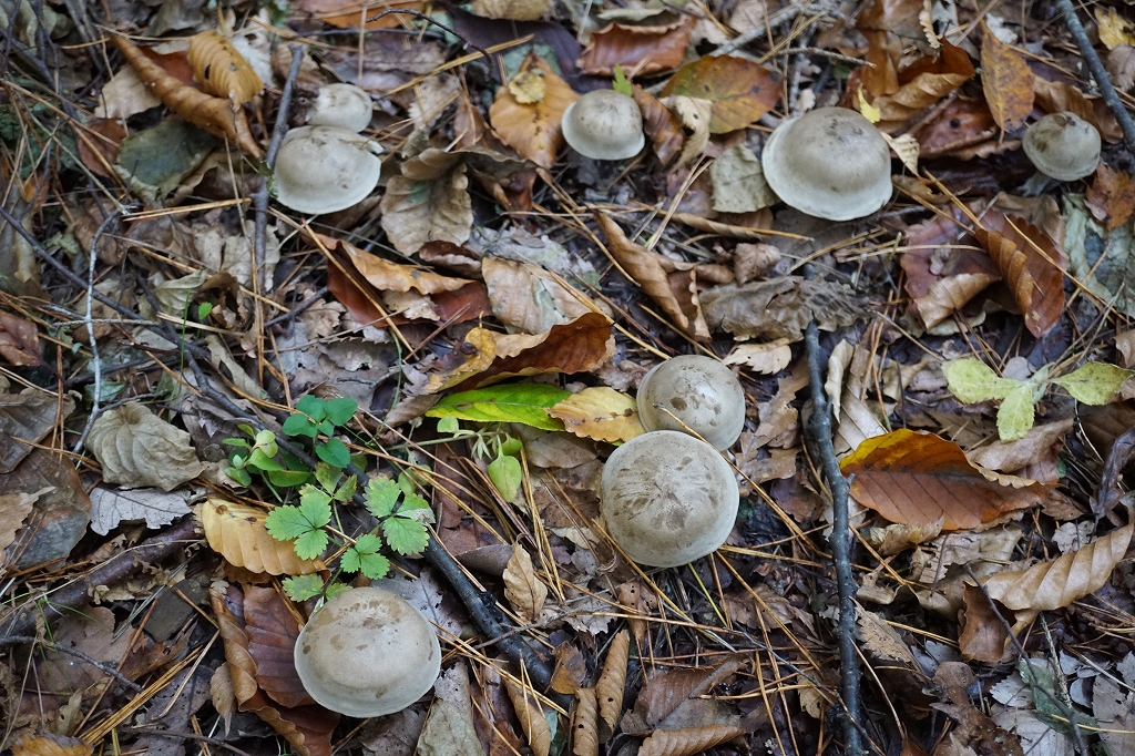 秋、アカマツやミズナラなどの混成林の地面に群生。傘は6cmくらい、初め半球形、のちやや中高の平となる。表面は帯オリーブ褐色、中央部から周辺にかけてすす色粒状の細鱗片を密布する。ひだは湾生、白色〜帯白色で疎、帯赤色のしみができる。柄は下部がやや膨らむ。表面は帯オリーブ白色、煤色〜灰色の鱗片をつける。