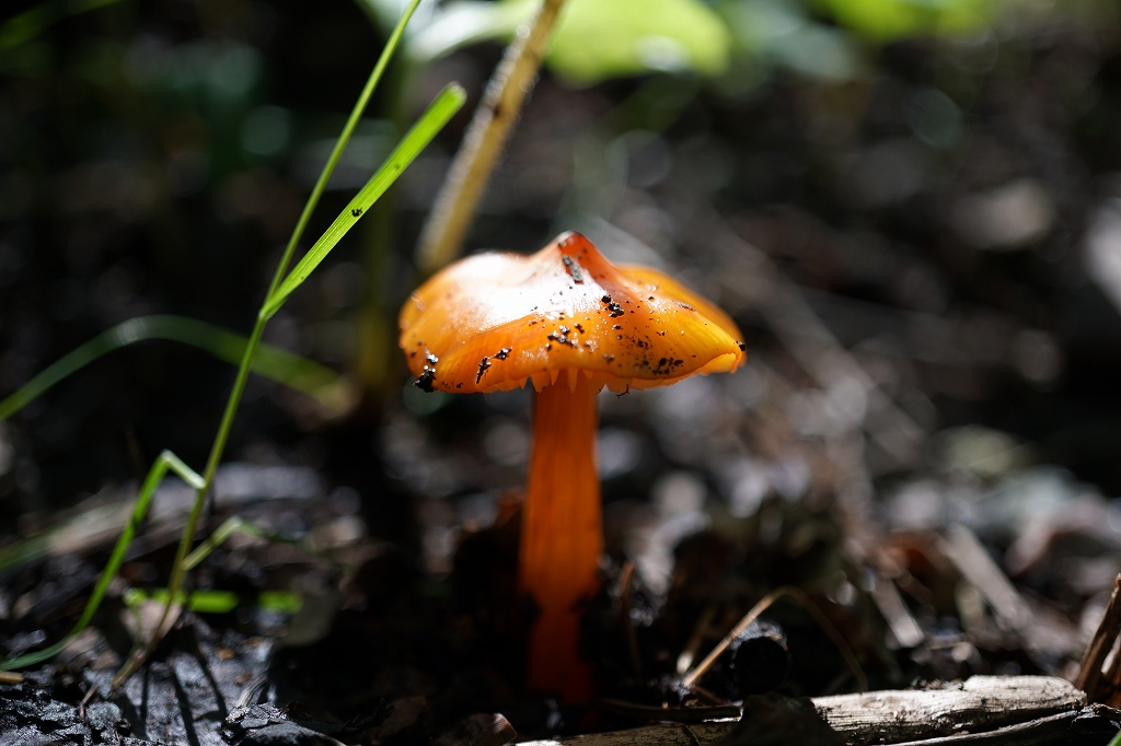 初秋〜秋、草地、道端、林内などに散生する。傘は初め円錐形、のちやや開くが、中央は尖る。表面は粘性が有り、赤色〜橙色。傷がつくと黒く変色する。ひだは淡黄色。柄は上下同幅で、表面は黄色または橙色で繊維状の縦線が有り、次第に黒変する。