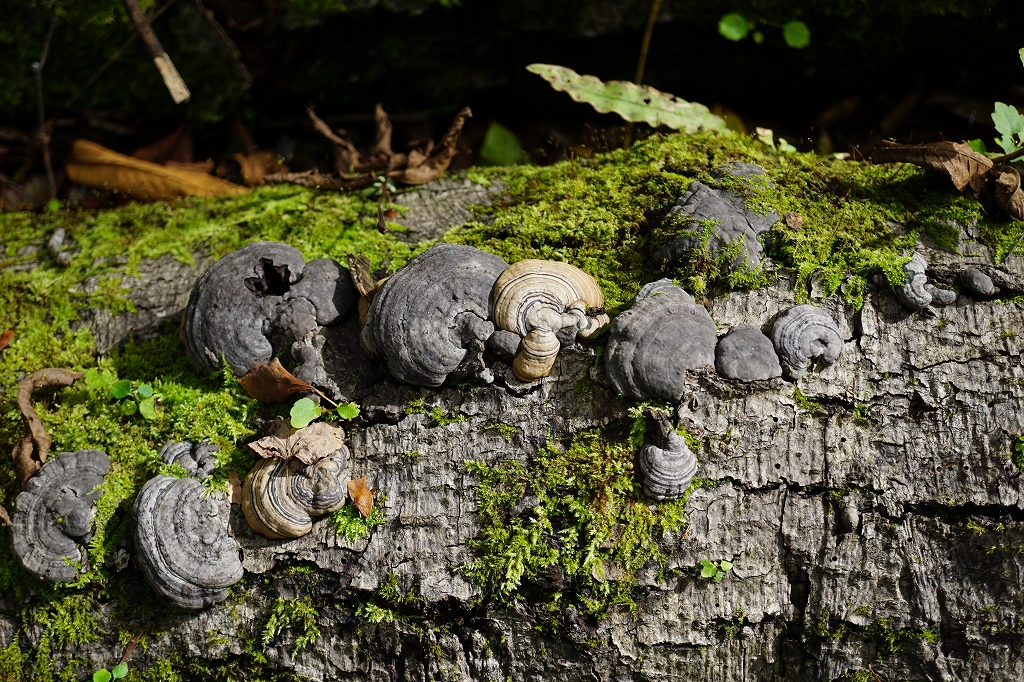 通年、ブナなどの立ち木、倒木上などに発生する。傘半円で、丸山形で肉厚。表面は硬くて厚い殻皮で覆われ、灰褐色〜灰褐色、環溝と幅広い環状の隆起帯とをそなえる。