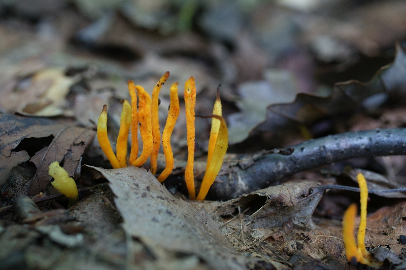 秋、林内地上に発生する。冬虫夏草のひとつで、土を掘り起こせば、鱗翅類の幼虫から発生しているものと思われる。高さ3〜6cmで、頭部は円筒形かひしゃげた棍棒型。全体に明るいサーモン・オレンジ〜鮮橙色〜橙色。