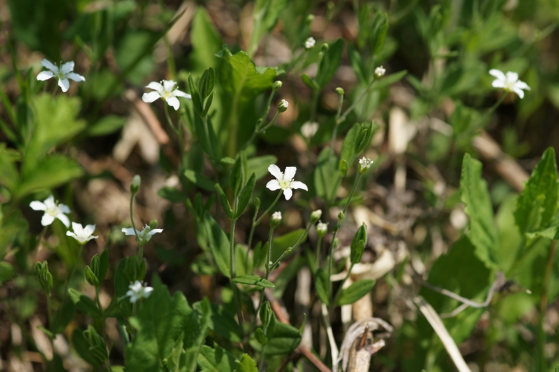 山地の草地や道端などに生え、茎の高さは5〜20センチで、細く上部で 枝分かれする。茎頂に、直径約1センチの白色の花をつける。花弁、萼片は5個。葉は対生し、長楕円形で、柄はない。