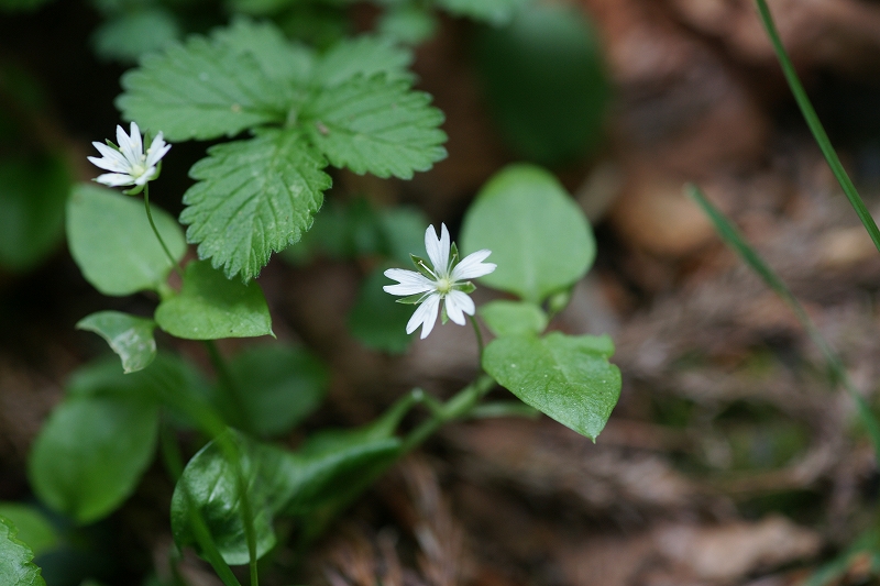 本州〜九州の山地の湿地に生える。茎は地を這い、上部は斜上し高さ10〜30cmほどになる。葉は対生し、三角状卵形で長さ2〜4cm、短毛がある。上部葉腋に柄をだし、直径1〜1.5cmの白花を開く。花弁は5個、先は浅〜中裂する。