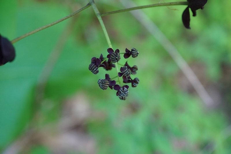 夏の終わりごろになるとアケビの実がぶら下がり、熟れてくるときれいな青紫色になる
