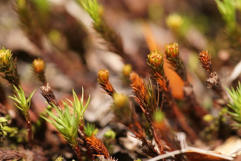 高山の日当たりのよい岩上や砂上に生育する。茎の高さは2〜3pで、ほとんど枝分かれしない。雌雄異株で、雄株は真っ赤な雄花盤を持ち、赤い花が咲いたようになる。