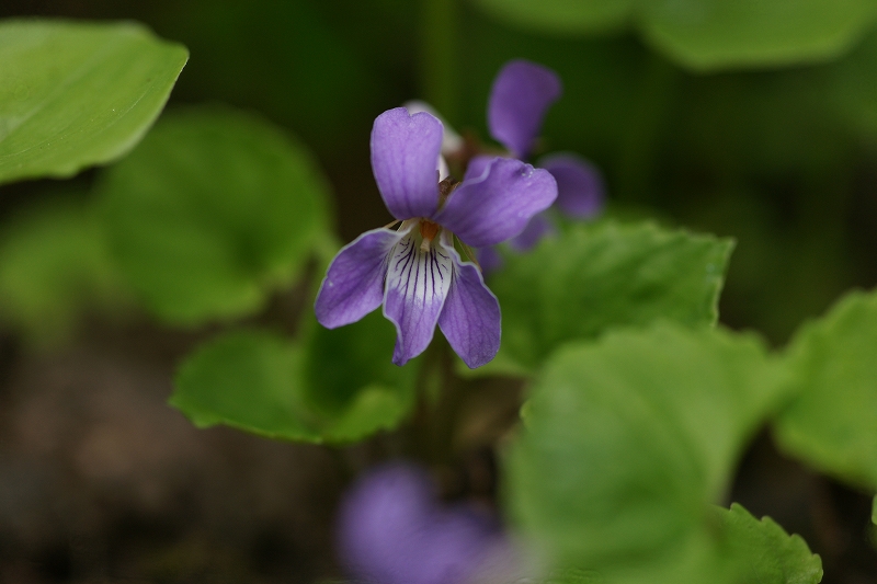 平地〜亜高山帯の湿った落葉樹林下などに生え、茎の高さは3〜10センチ。地上茎はなく、地面 から伸びる花柄に、直径1.5〜2センチの紫紅色の花をつける葉は心形で、先がとがり、ふちに波状の鋸歯がある。