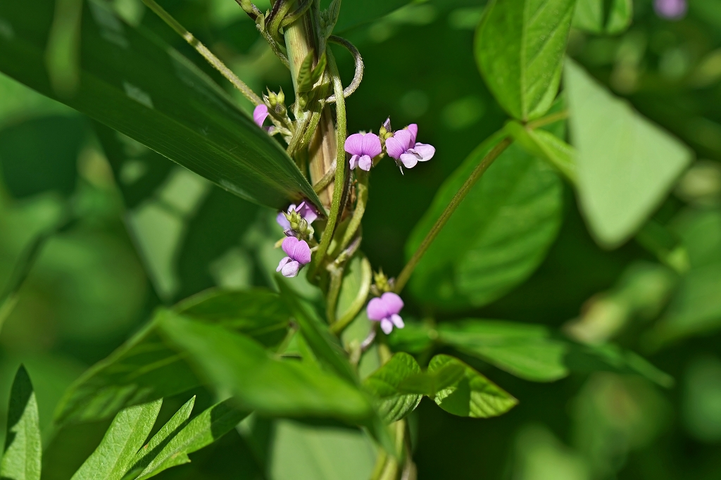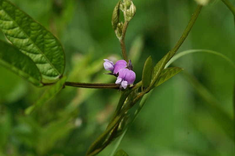 道端や空き地などでみられる蔓性植物。花径は1センチに満たないが、鮮やかな紅紫色をした蝶形の花が数個つく。