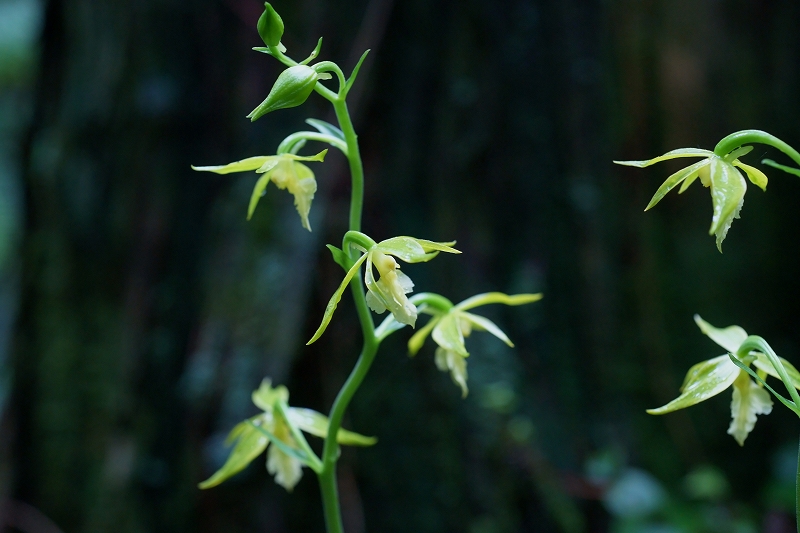 本州〜九州のスギ林、アカマツ林、ヒノキ林などの針葉樹林の湿った林床に生育する。花茎の上部にまばらに黄緑色の花を5〜12個つける。環境省の絶滅危惧U類に指定されている。