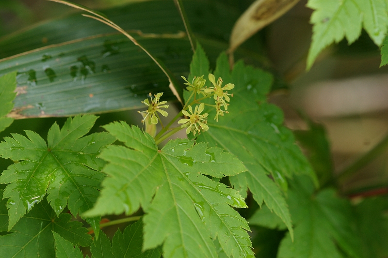 中部地方以北の亜高山帯に生息する落葉小低木。淡い黄色の小さな花が咲かせ、葉はカエデに似ていて切れ込みがあり紅葉する。