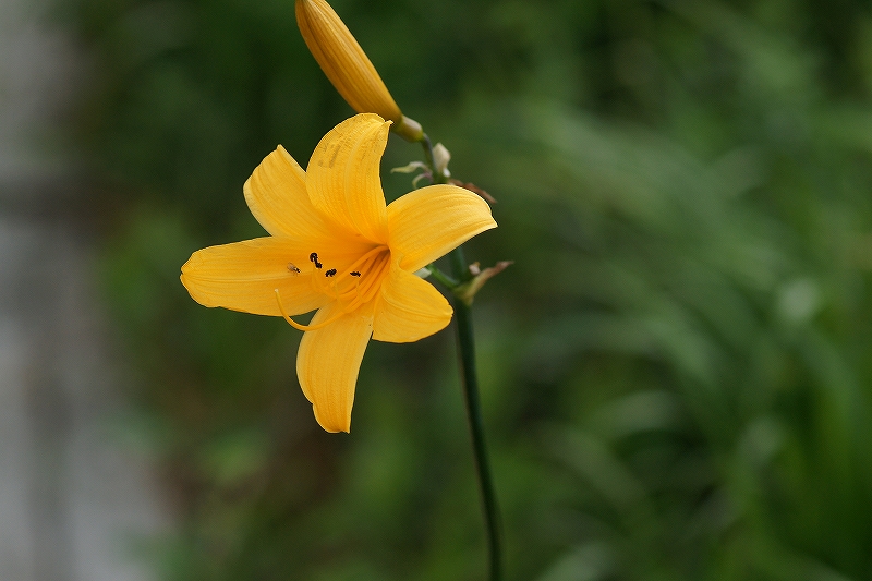 山地の草原に生え、花はラッパ状に開き、直径7センチくらいである。 花びらは6枚あり、黄橙色をしている。 朝開いて夕方にはしぼむ一日花である。
