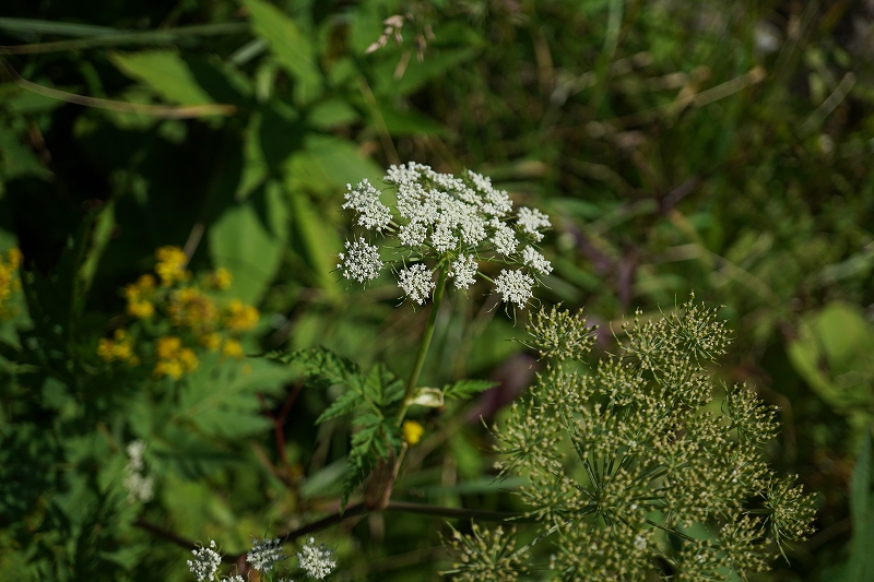 亜高山〜高山帯の草地などに生え、茎の高さは40〜80センチ。枝先の複散形花序に、直径約 2ミリの白色の花を多数つける。花序には細い総苞片、小総苞片があり目立つ。葉は2回3出羽状複葉で、小葉はさらに羽状に裂け、終裂片の先が尾状に伸びる。