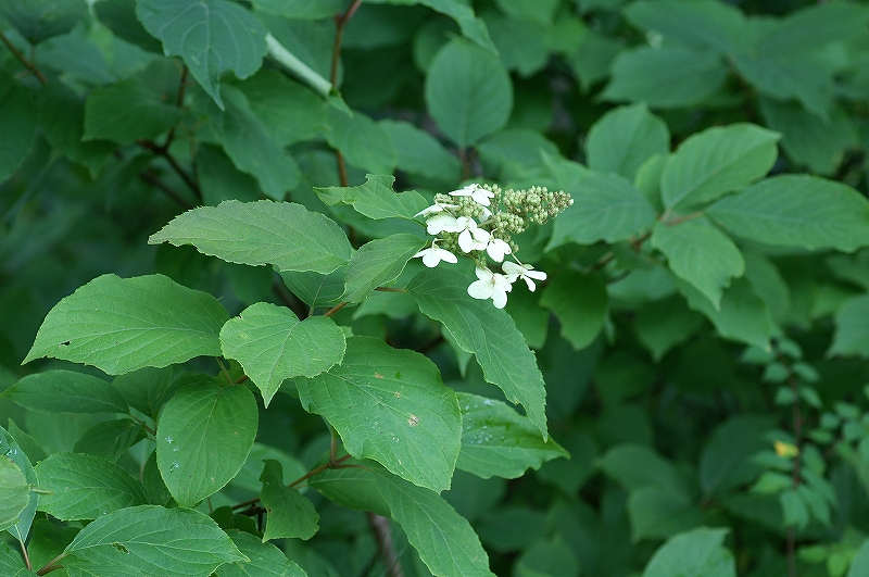 山地の林の縁や草地に生える樹木。大きな円錐花序を出して白い両性花をたくさんつけ、周囲に数個の装飾花をつける。 名の由来は、樹液が和紙をすく際の糊に利用されたことからきている。