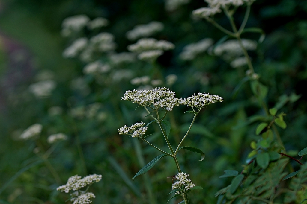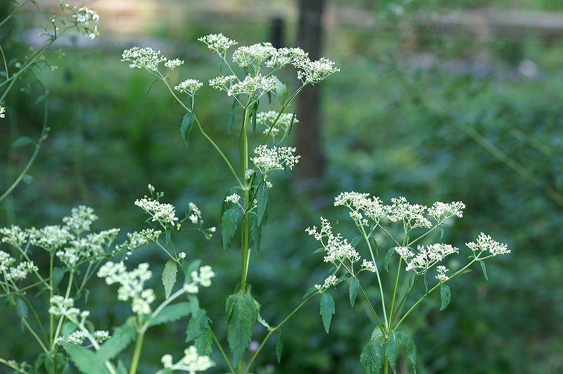 日当たりの良い草地や林の中に生え、茎の上部で枝分かれをして、散房花を出し、白い小花をたくさんつける。名の由来は、黄色い花を付けるオミナエシと対比させてつけられたもの。