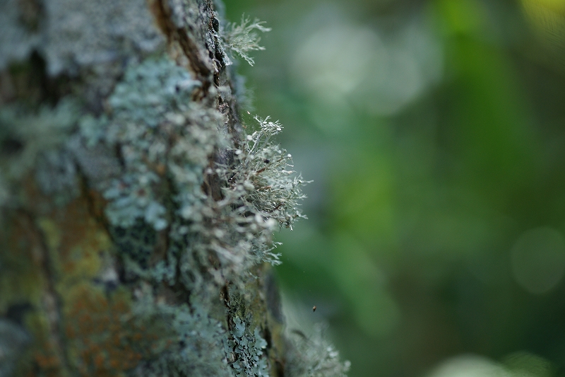 樹木上に生育する。表面は灰白色、細かく枝分かれし、円盤状の子器をつける。